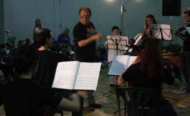 Dirigiendo, el creador de la Orquesta, el maestro Guillermo Sotelo.